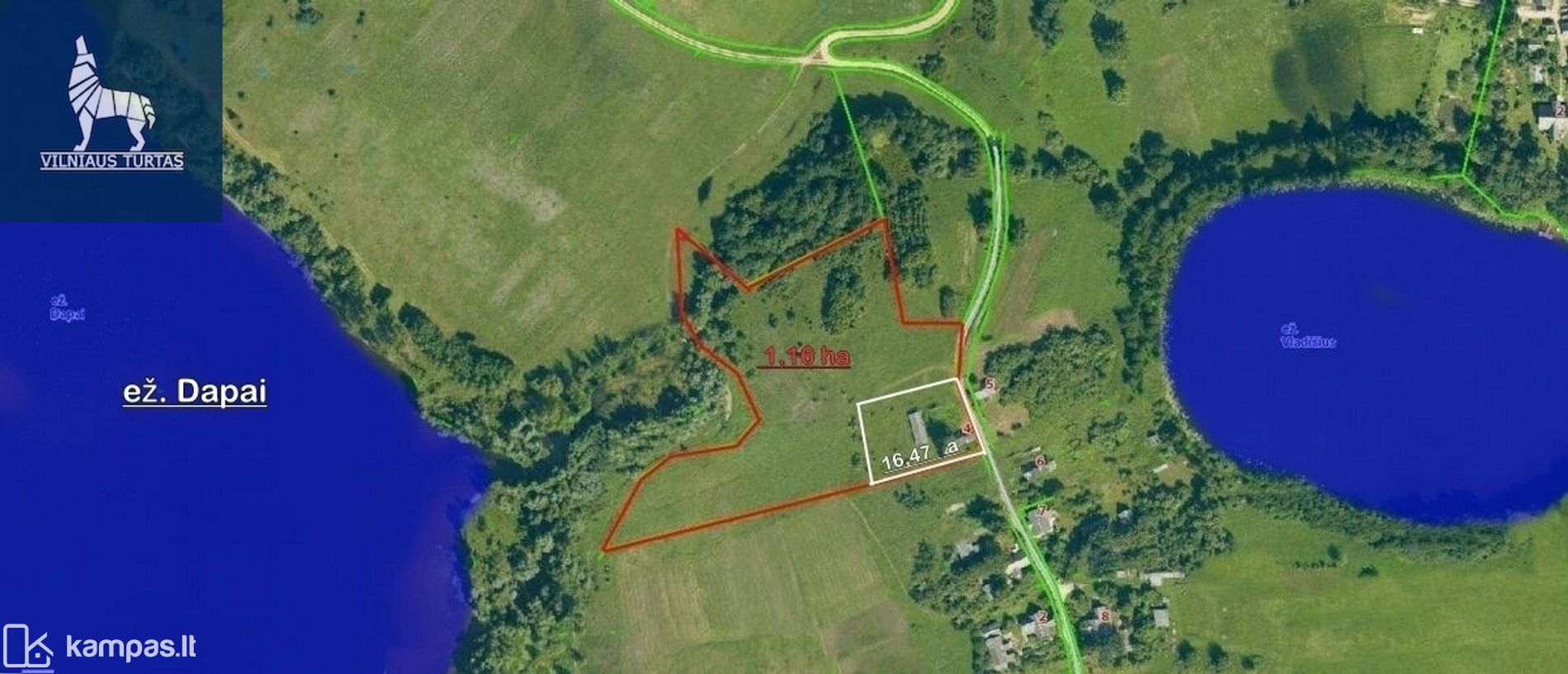 Labai vaizdinga vieta - nuo sklypo matosi du ežerai Vladišiaus ir Dapų.