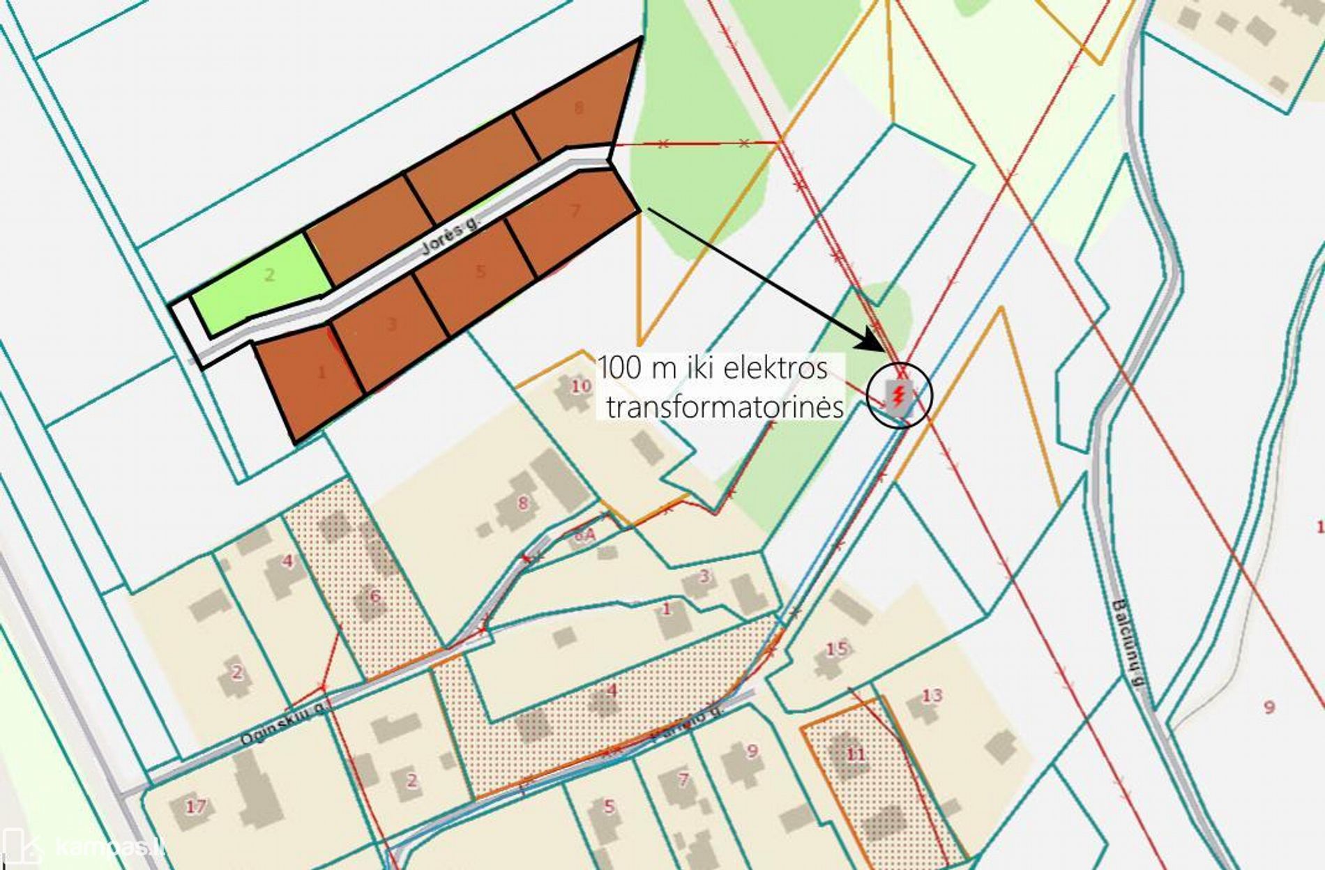 - Privažiavimas – suformuotas atskiras susisiekimo ir inžinerinių tinklų sklypas (Jorės g.).