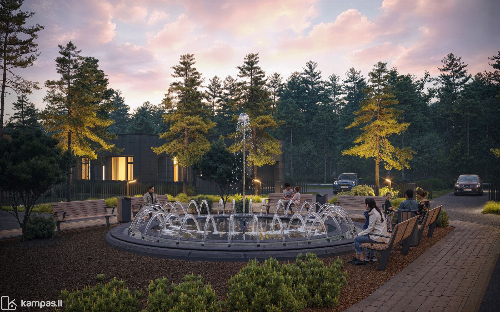 - Bus įrengtos žaliosios zonos, sukurtos komfortiškam gyvenimui: vaikų žaidimų aikštelė, lauko treniruokliai, grill zona, fontanas, meditacijos kupolas.