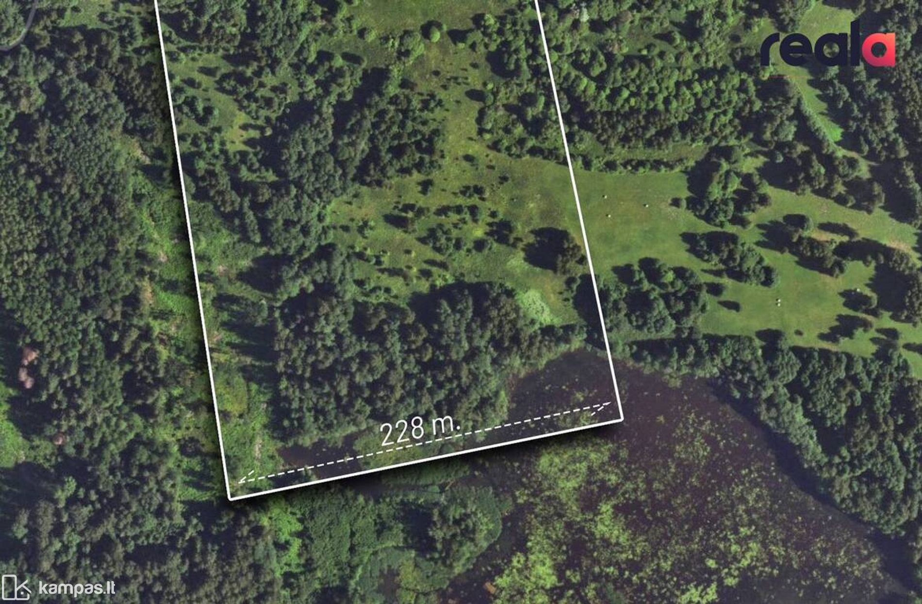 \ 228 m., sklypas ribojasi su vandens telkiniu.