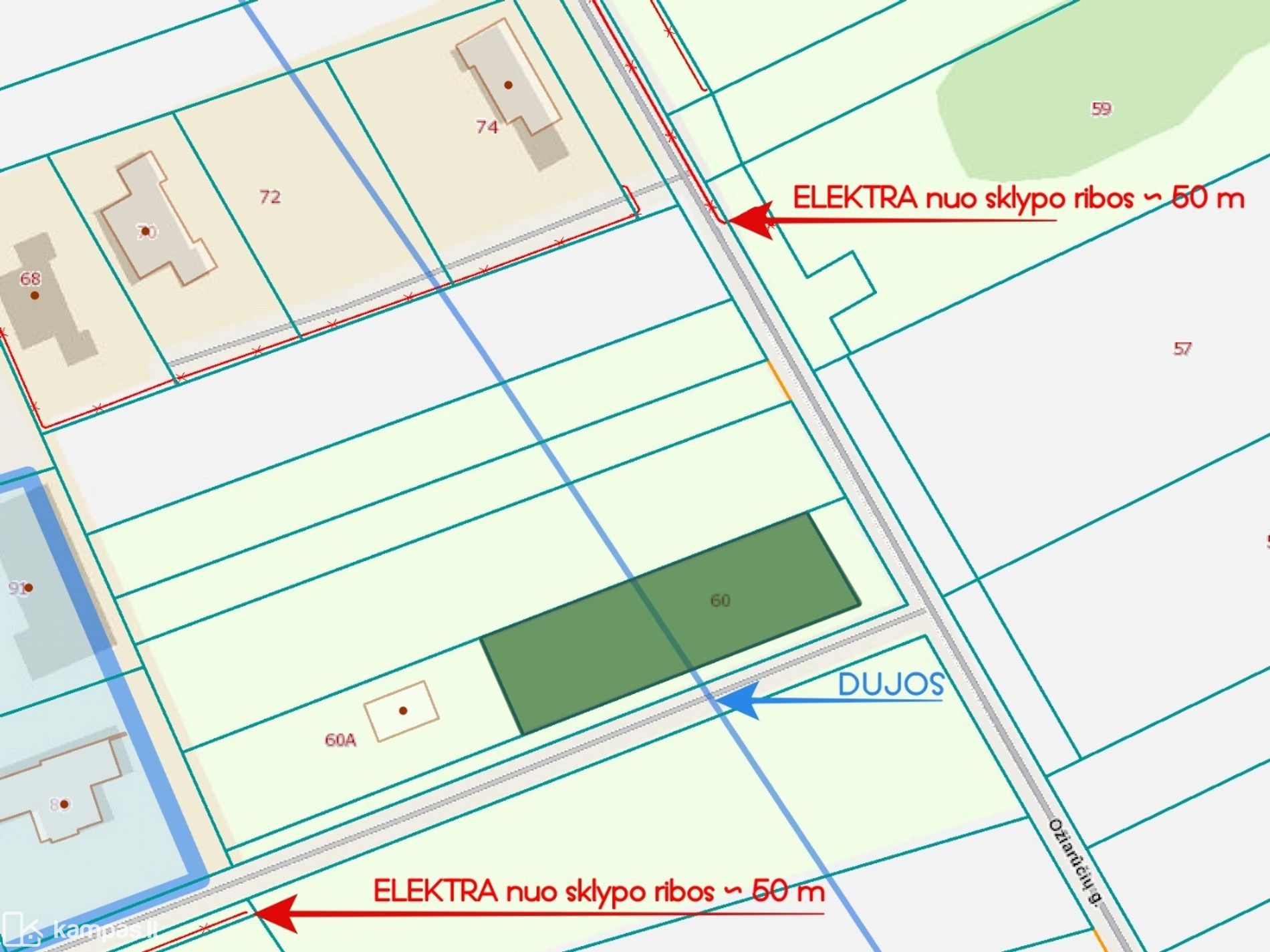 * Elektros linija - 50 m. nuo sklypo;