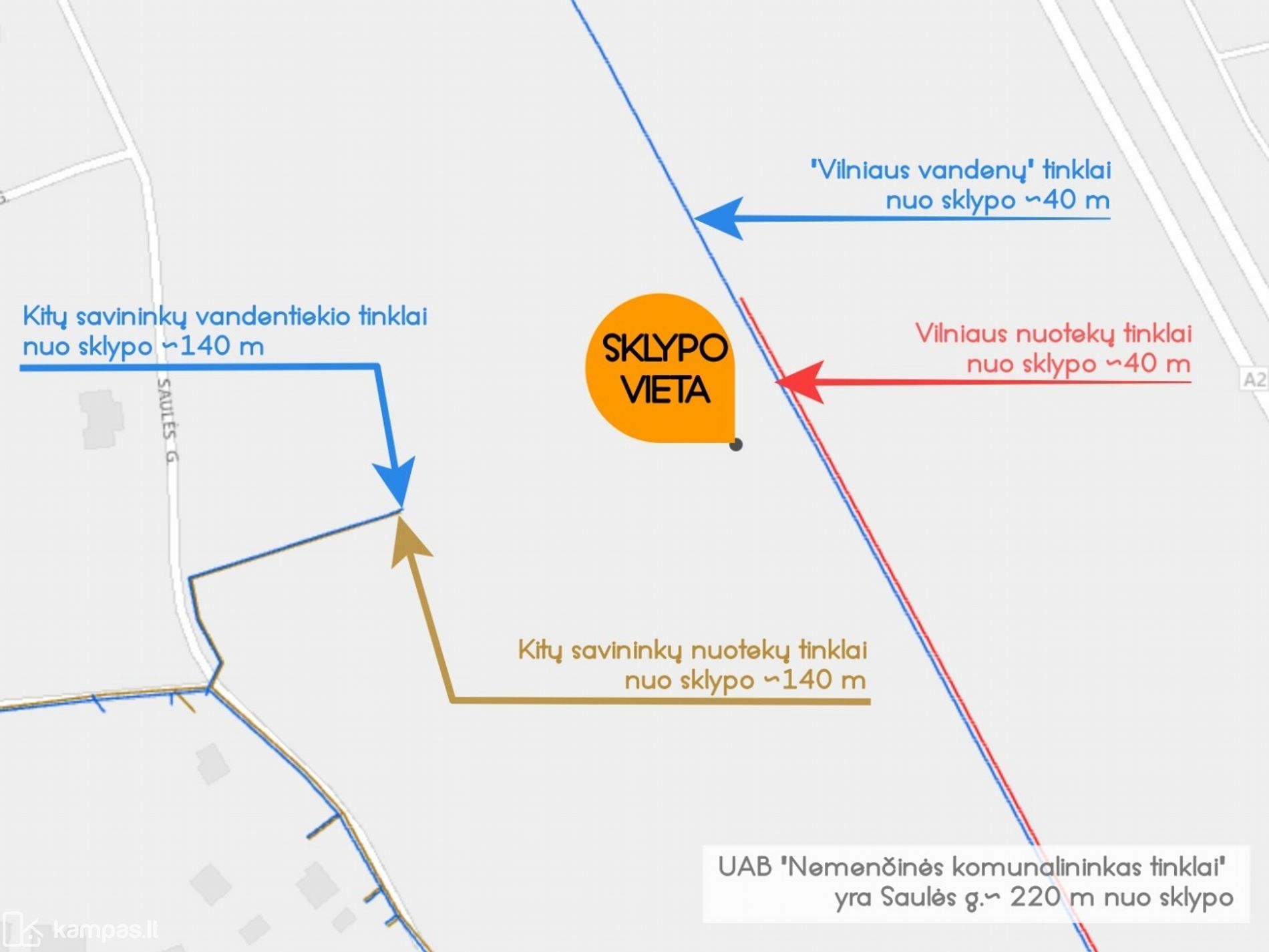 * Vandentiekis, kanalizacija: miesto, ties sklypo riba;