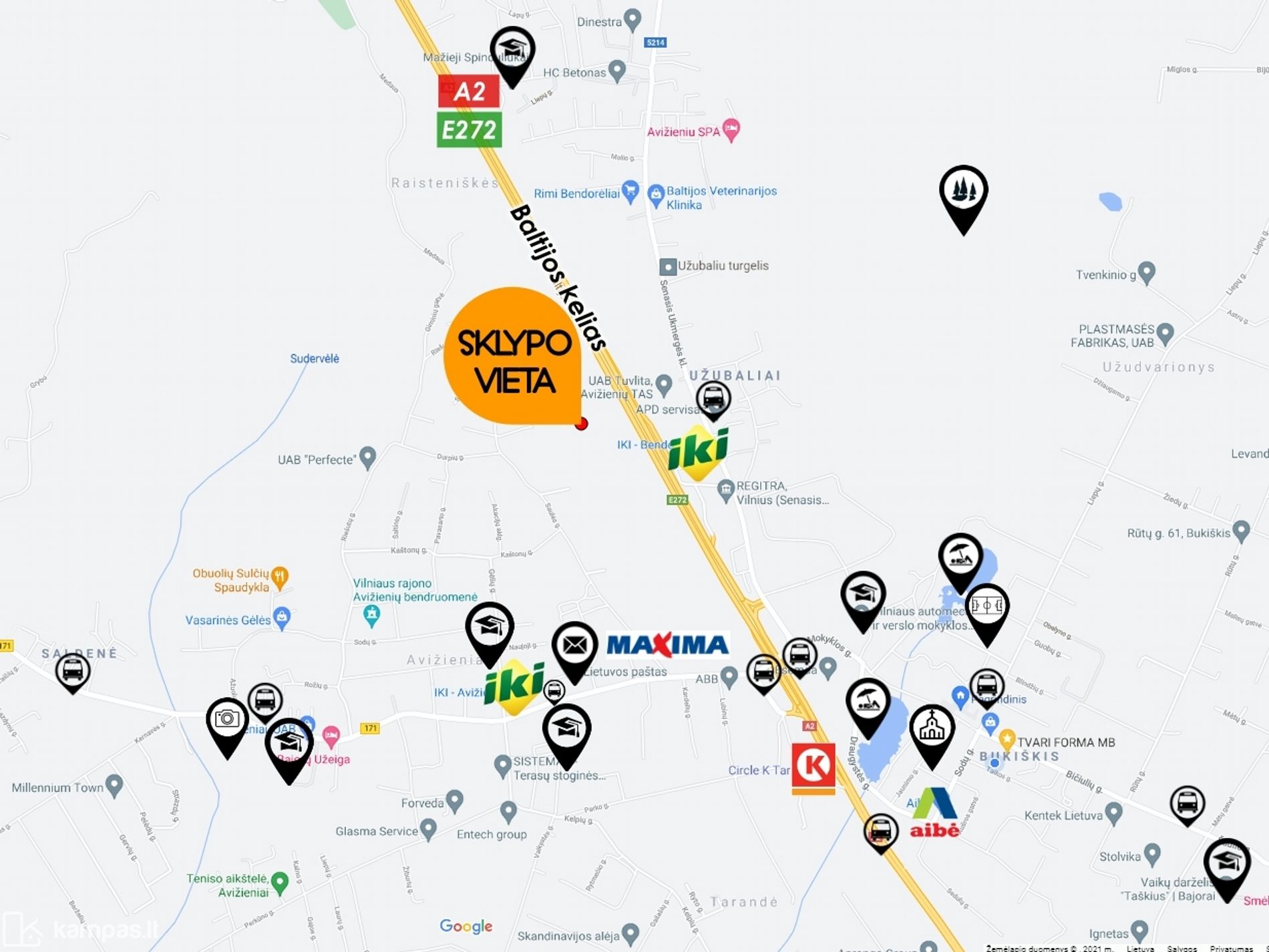 * Bukiškio progimnazija - 2.2 km.
