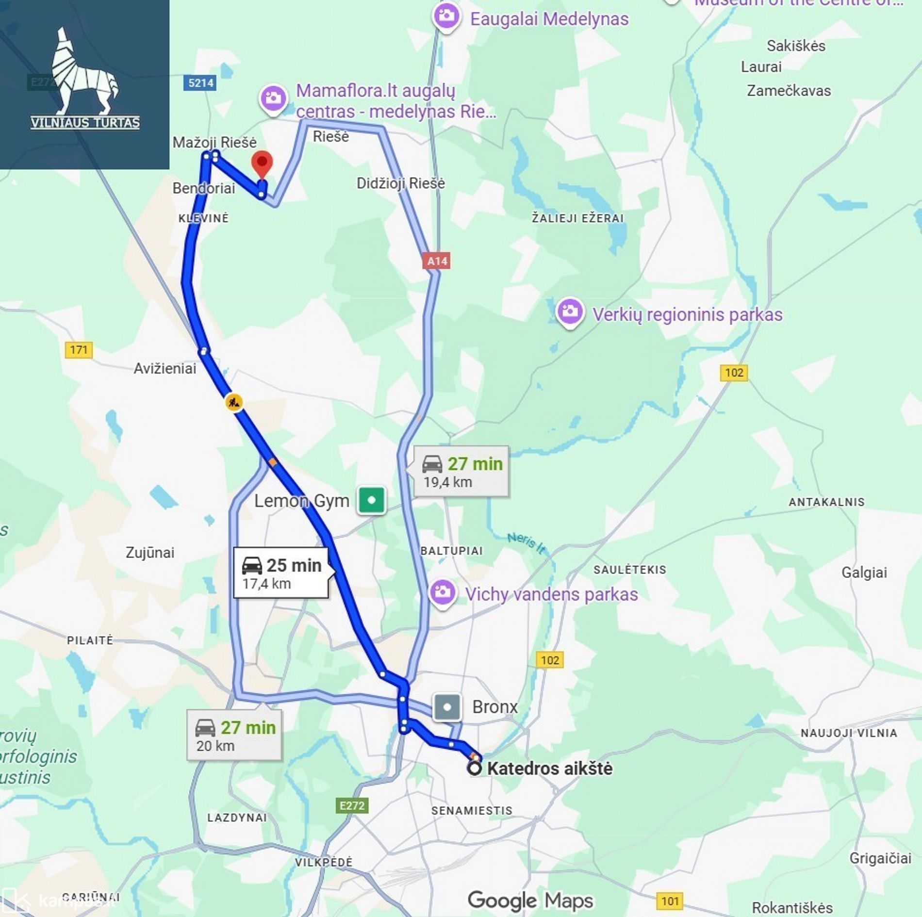 • Iki Vilniaus miesto centro – apie 20–25 min. kelio.