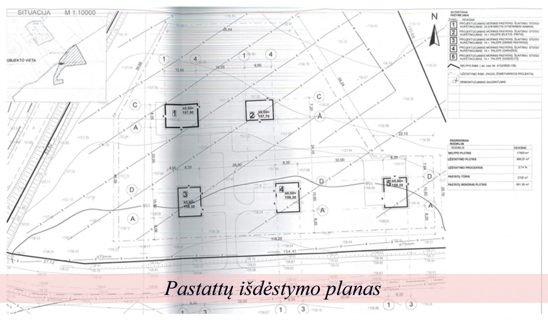• Yra išduotas statybos leidimas su projektu 5 pastatams: