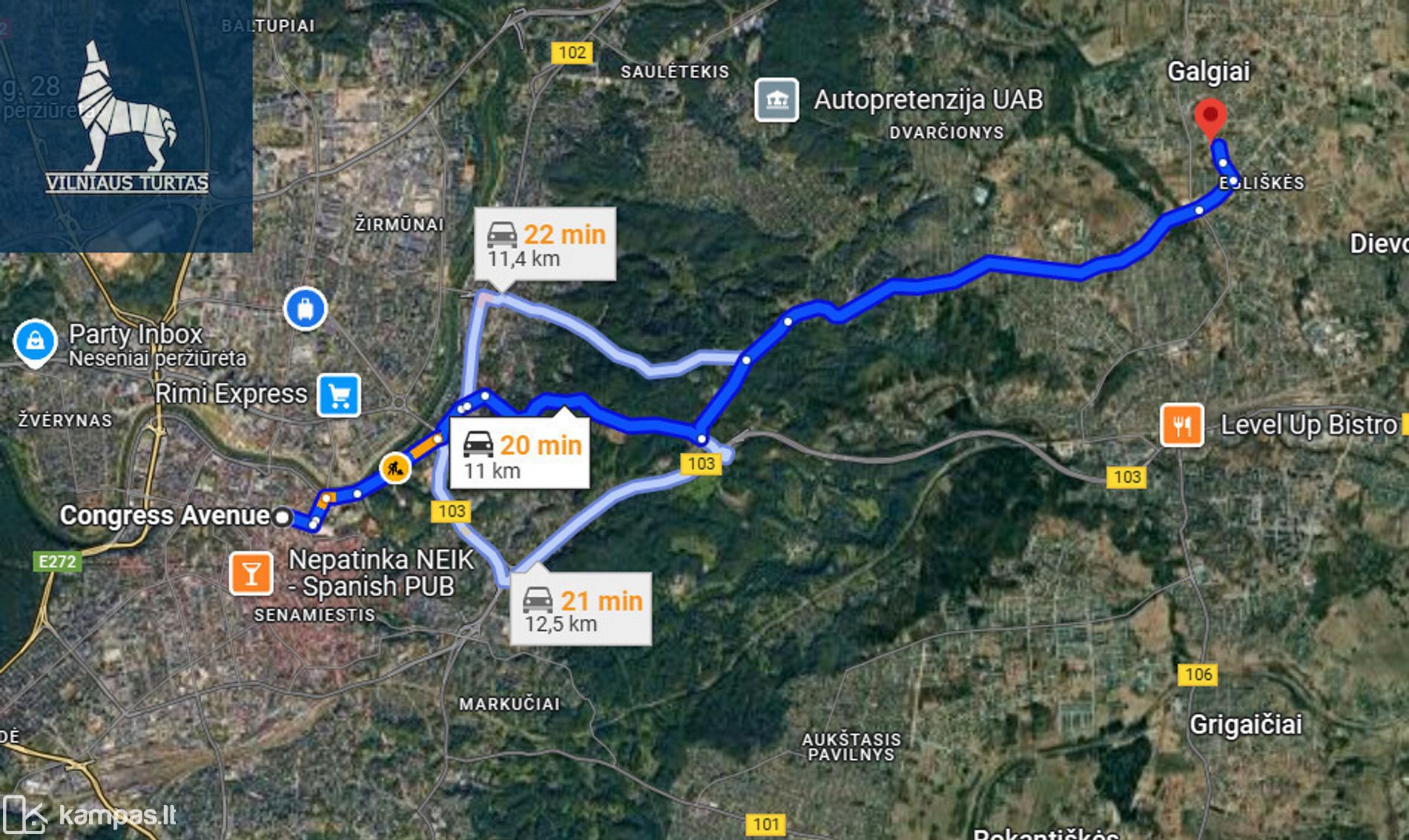• Vilniaus miesto centrą pasieksite su automobiliu vos per 15 min!