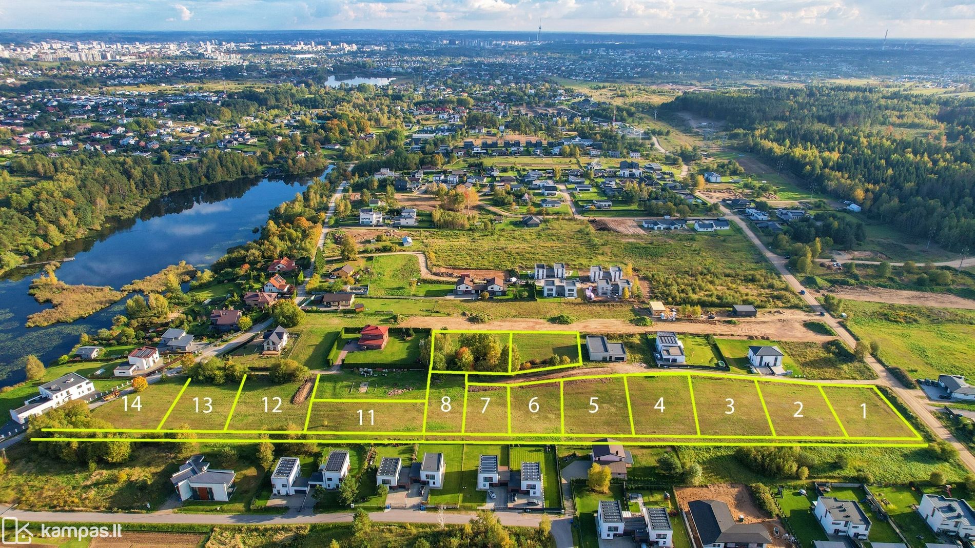 - Patogūs sklypų plotai – nuo 10 iki 15 arų;