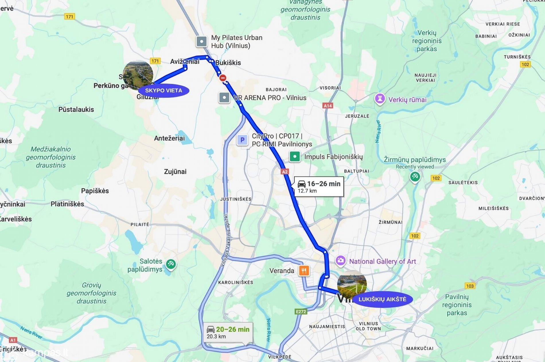 - Vilniaus miesto centrą automobiliu pasieksite vos per 16 minučių.