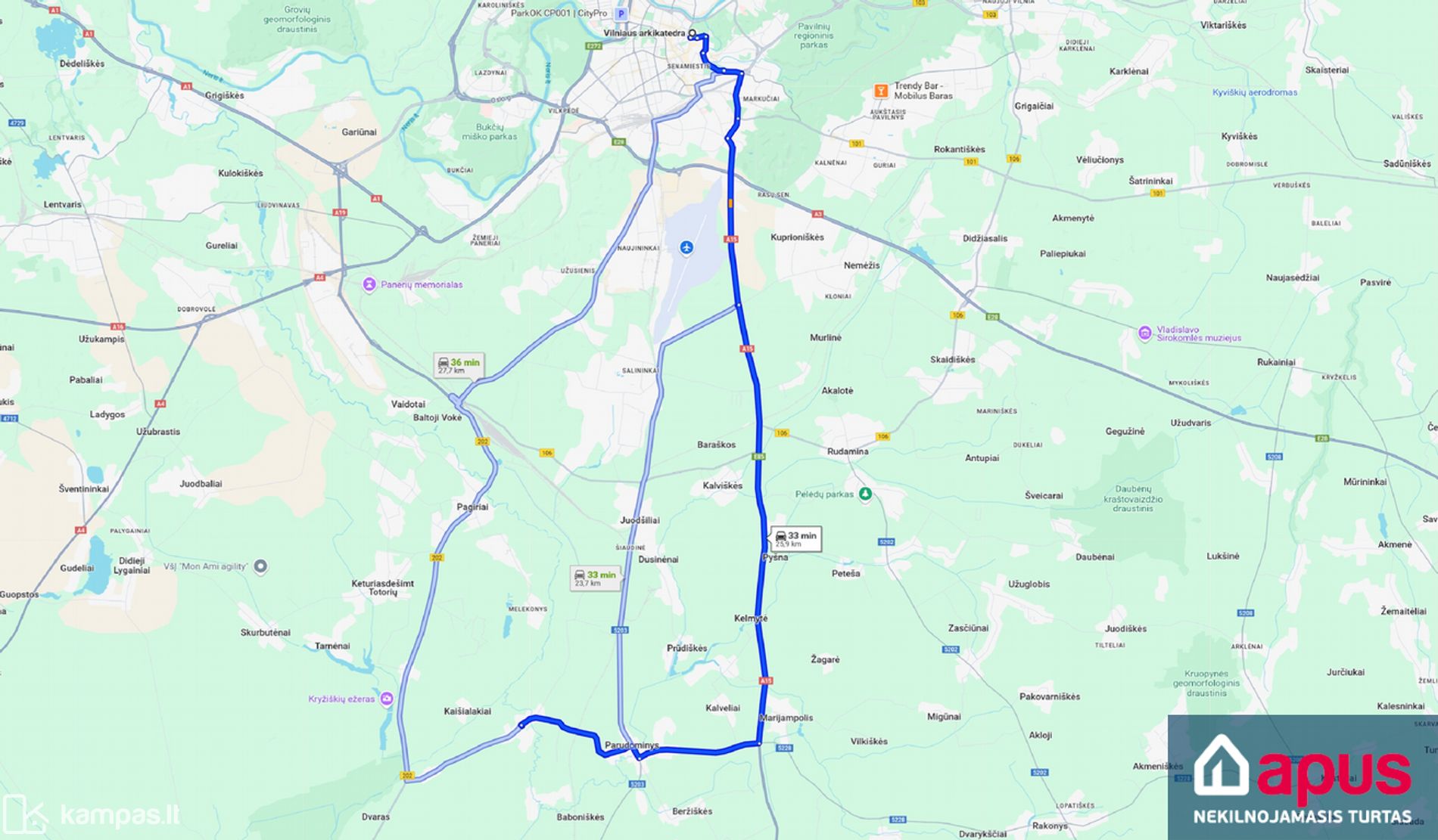 • Nuo Vilniaus centro ~26 kilometrai arba apie 33 minučių automobiliu.