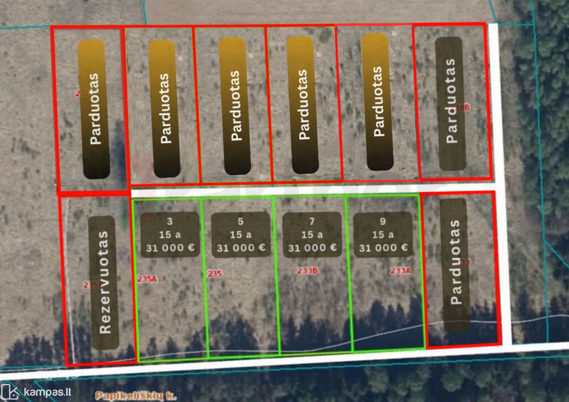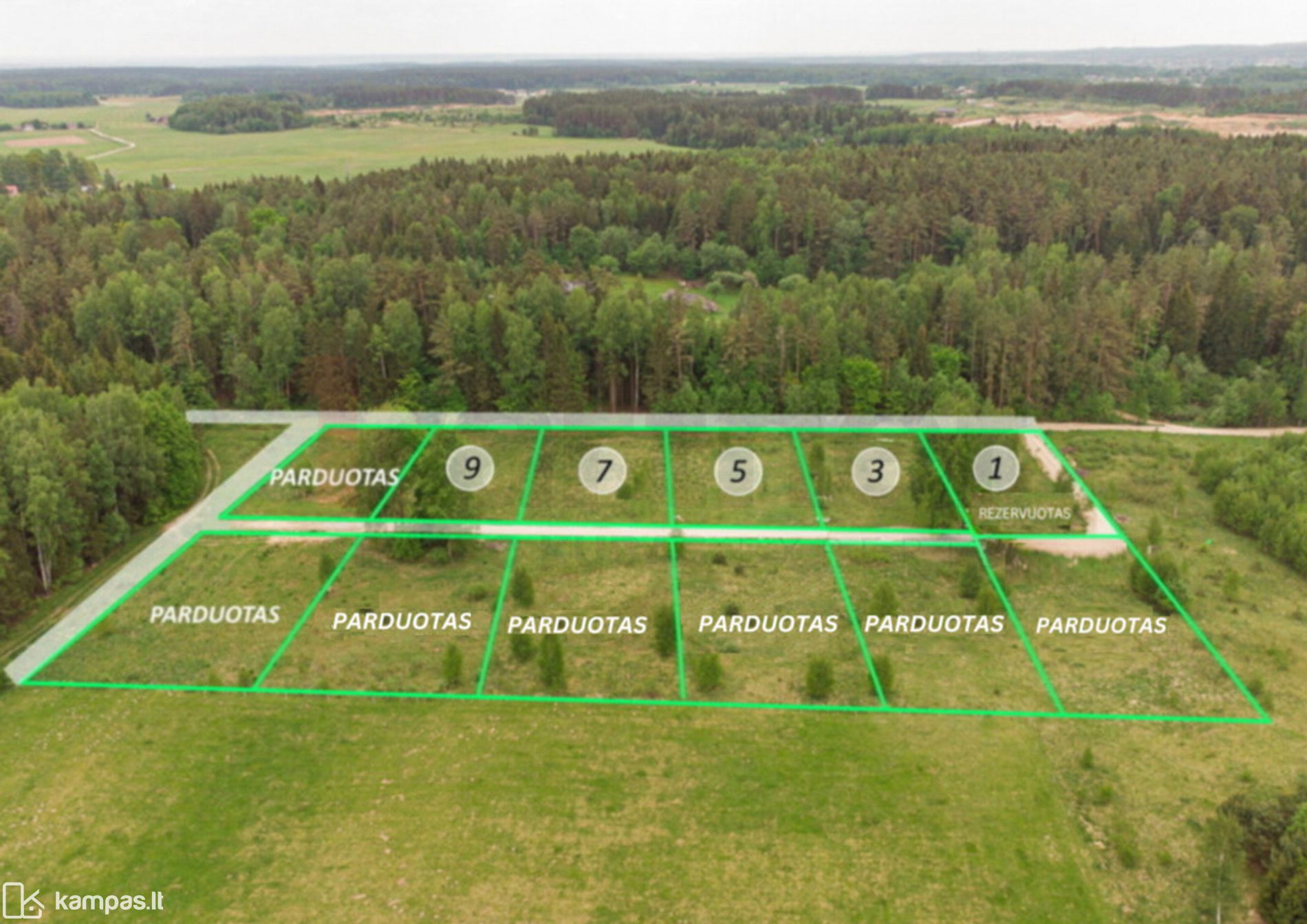 Parduodami namų valdos žemės sklypai naujai suformuotame kvartale, šalia miško. Padarytas vidinis sklypų kelias - presuotas žvyras.
