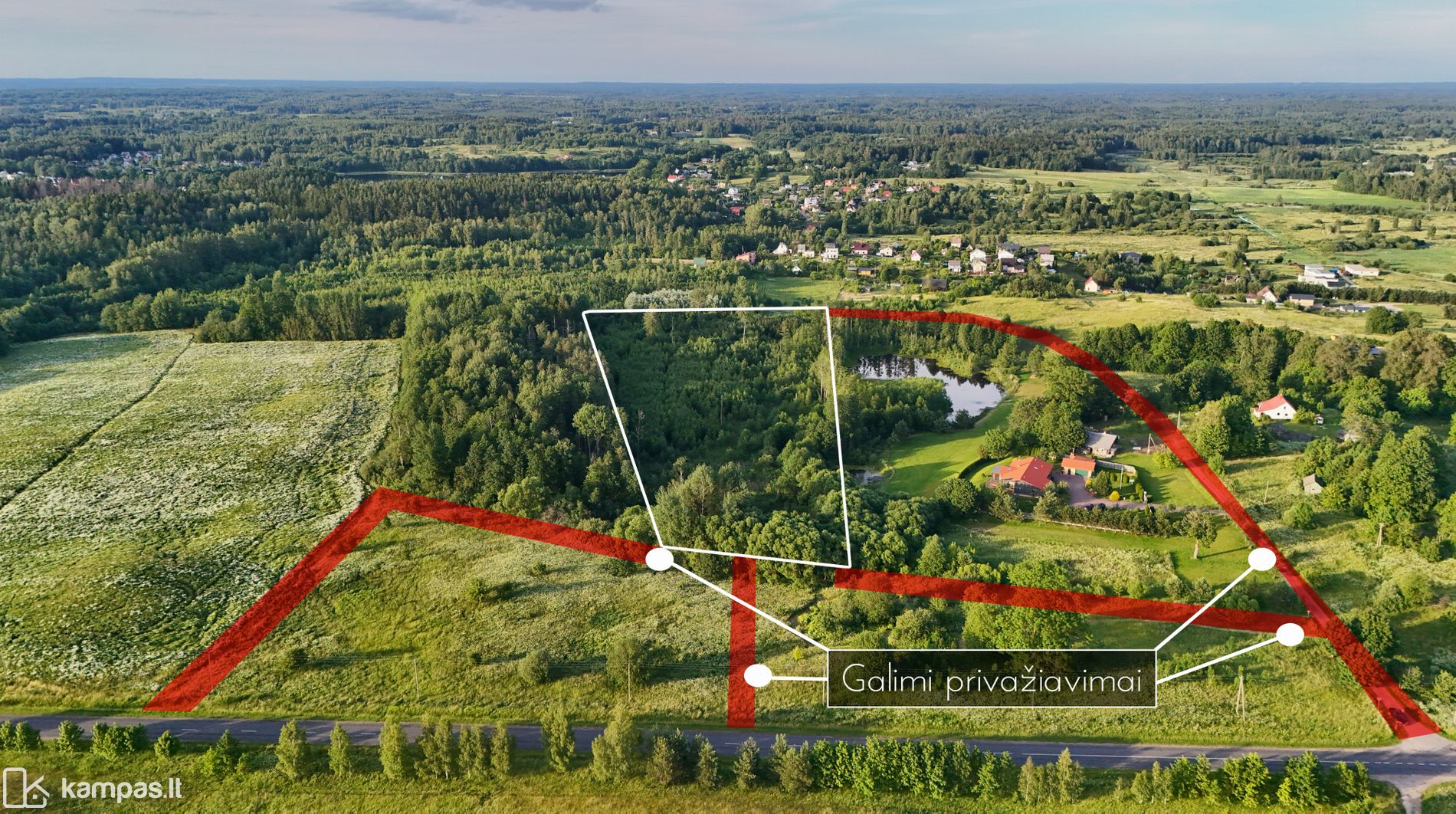 Sklypas ribojasi su ežeriuku. Taip pat yra tvenkinys. Privažiavimas asfaltu.