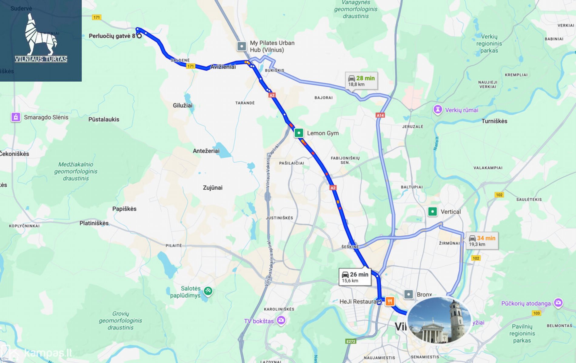* Puikus susisiekimas su Vilniumi viešuoju transportu - važiuoja 108, 110, 127 maršrutų autobusai;