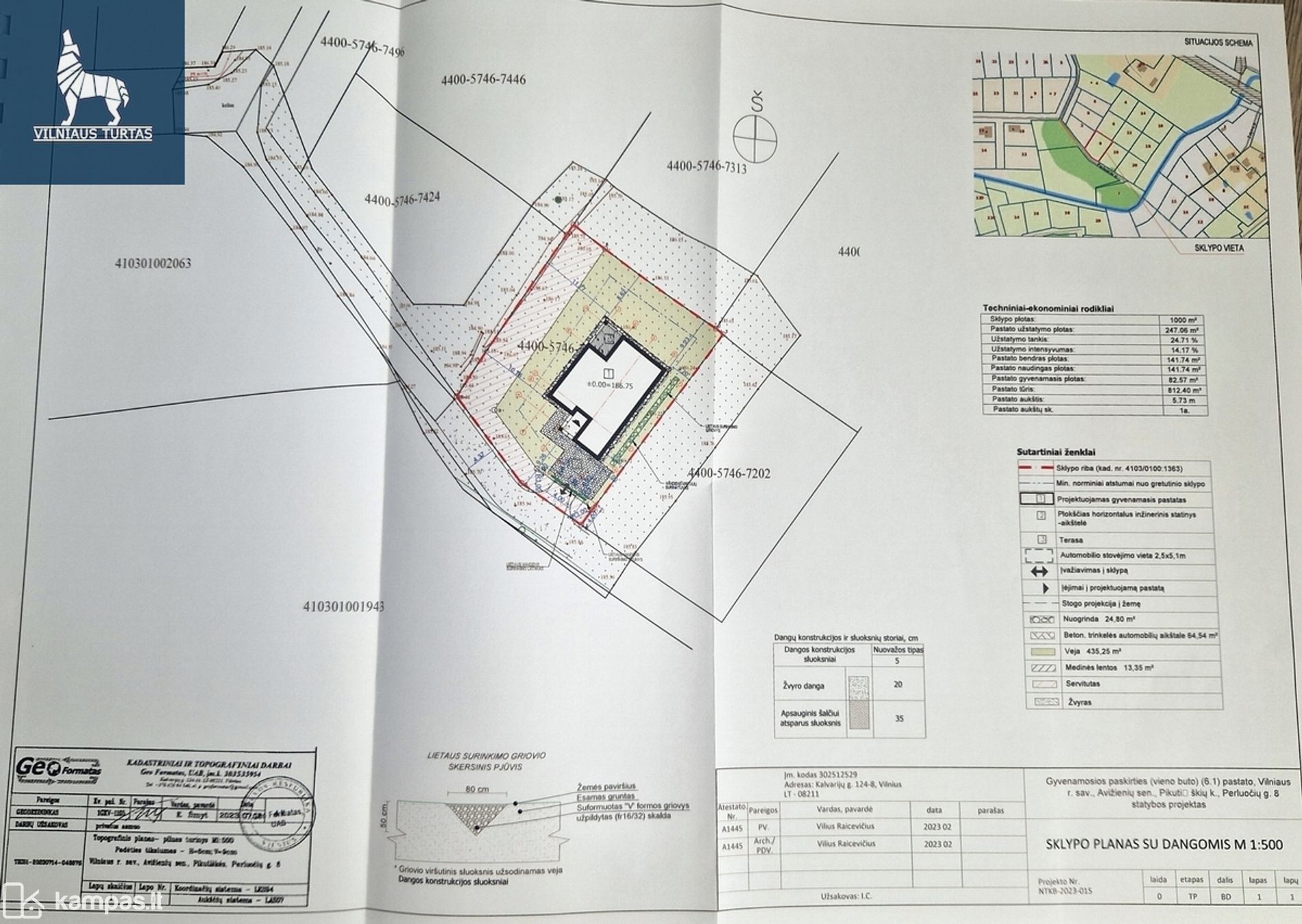 * Yra namo projektas (2024 m.) ir statybos leidimas;