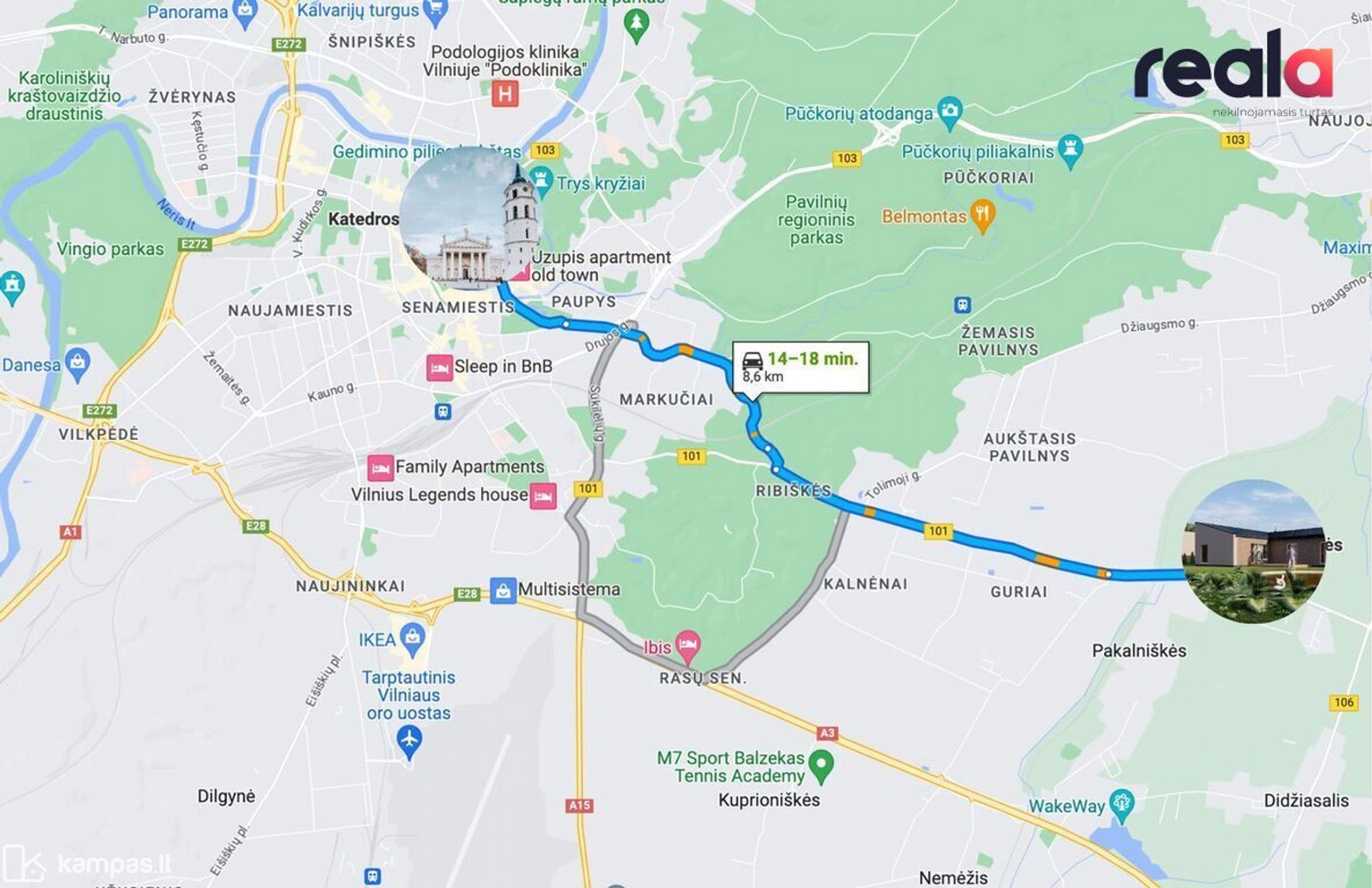 - Iki Vilniaus miesto centro ~ 8,6 km;