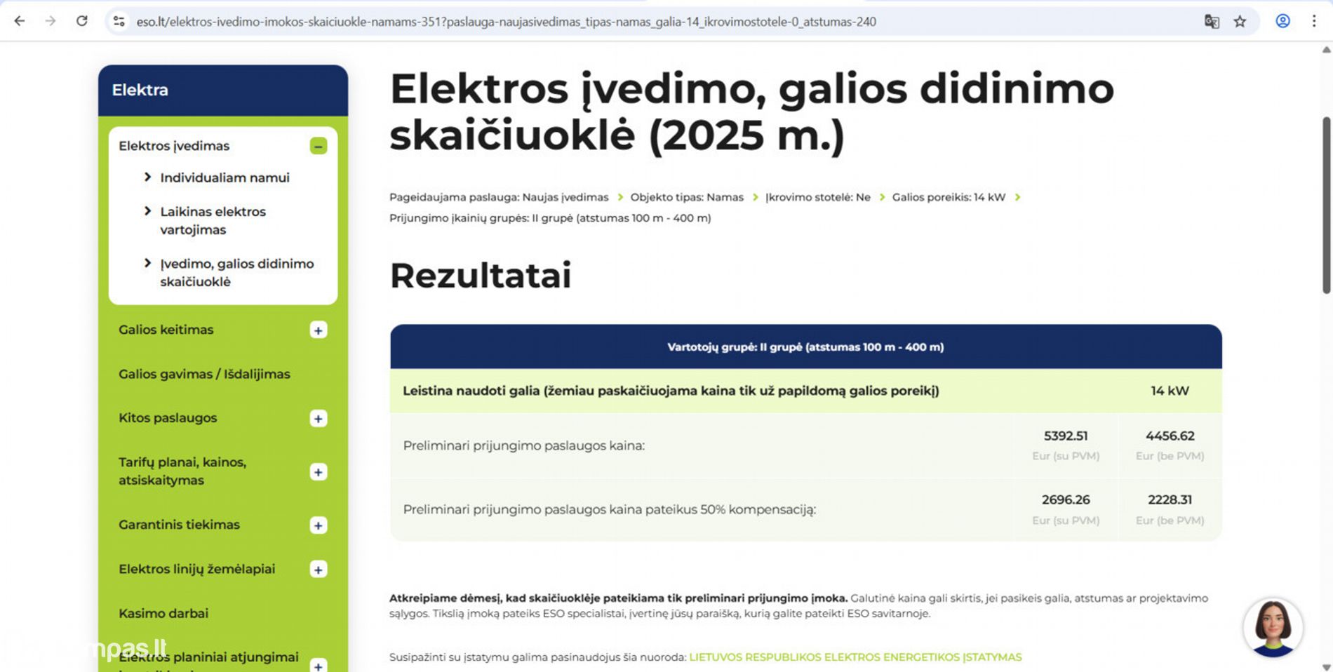 Preliminari prijungimo kaina: 5 392,51 € (su PVM)