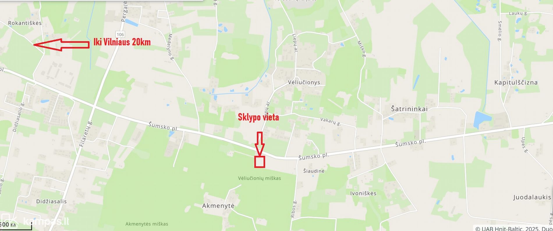 Patogus privažiavimas iš Šumsko plento, numatyti kelio ir komunikacijų servitutai.