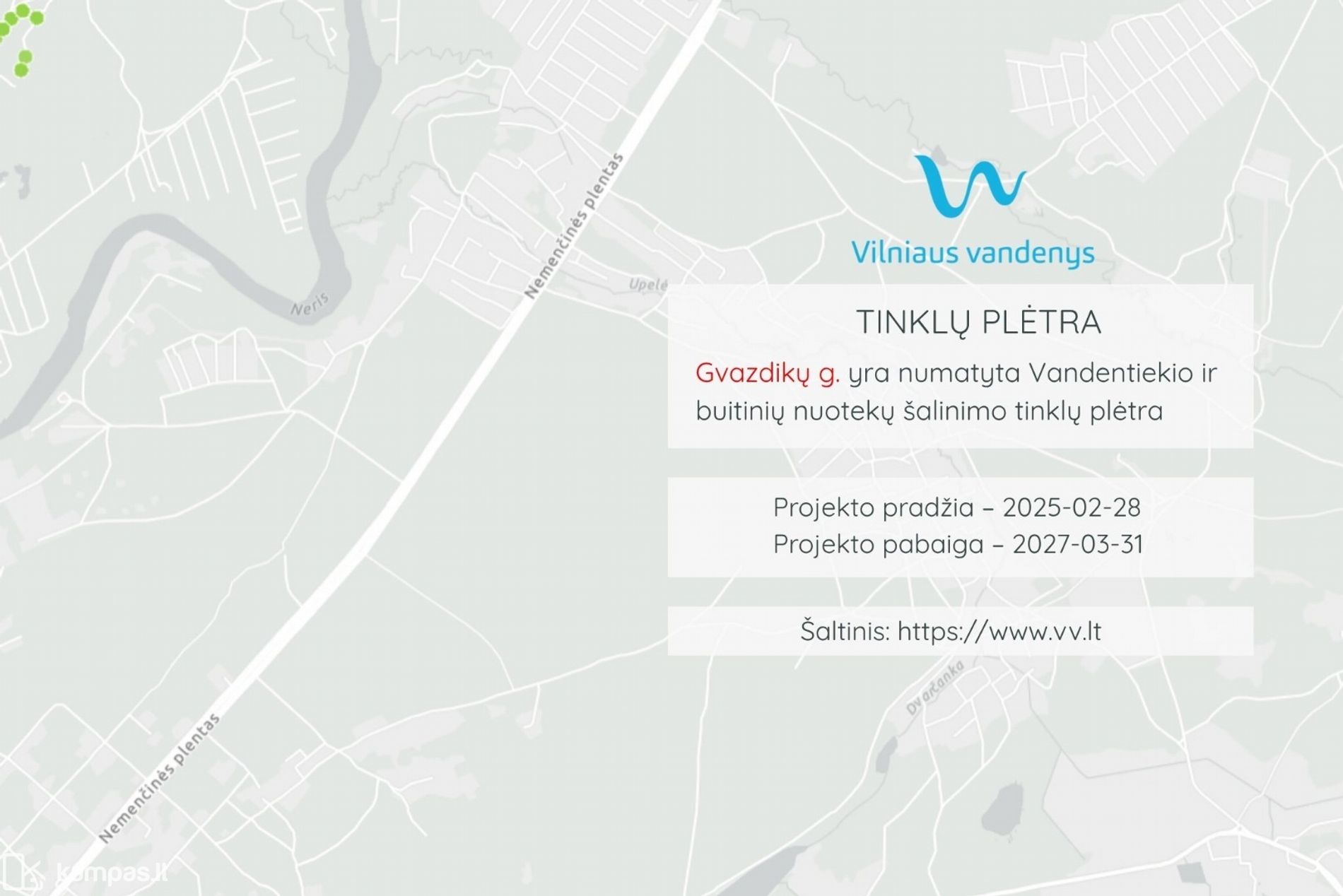 Šiuo metu vykdoma vandentiekio ir buitinių nuotekų tinklų plėtra Gvazdikų g. („Vilniaus vandenys“).
