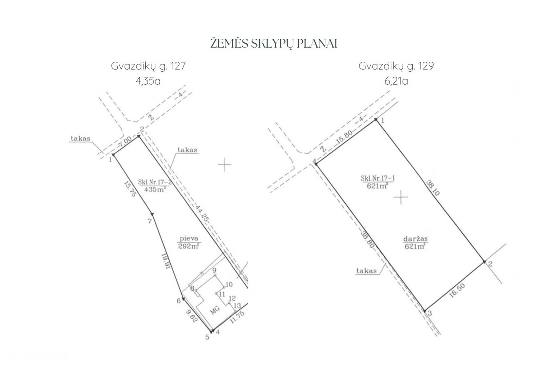 • Sklypų plotas: 6,21 a ir 4,35 a (iš viso – 10,56 a);