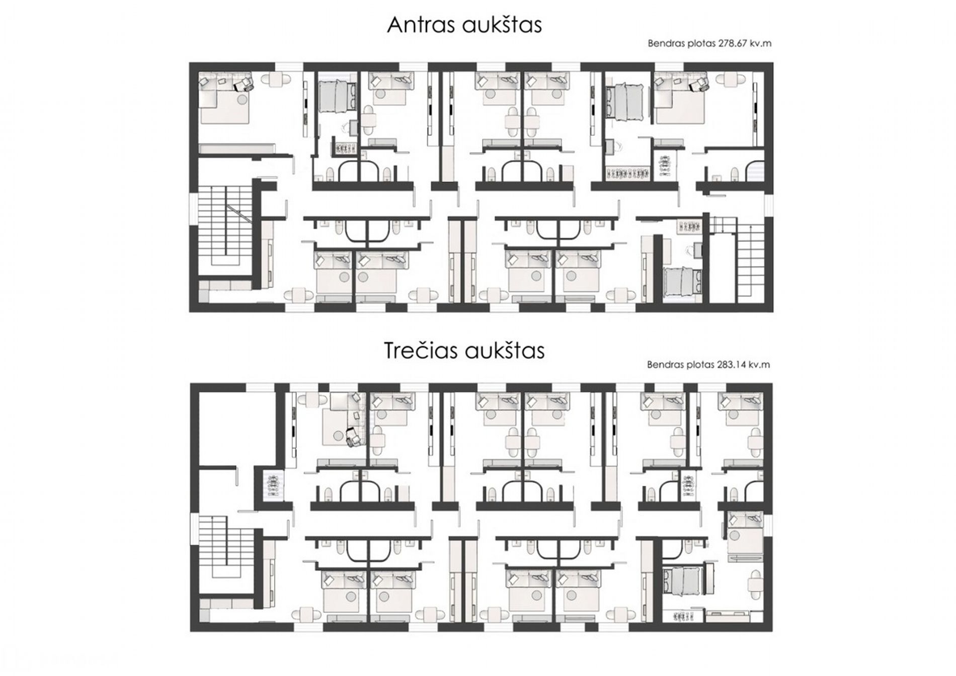 - Galimas patalpų plotas apie – 961,71 kv.m;