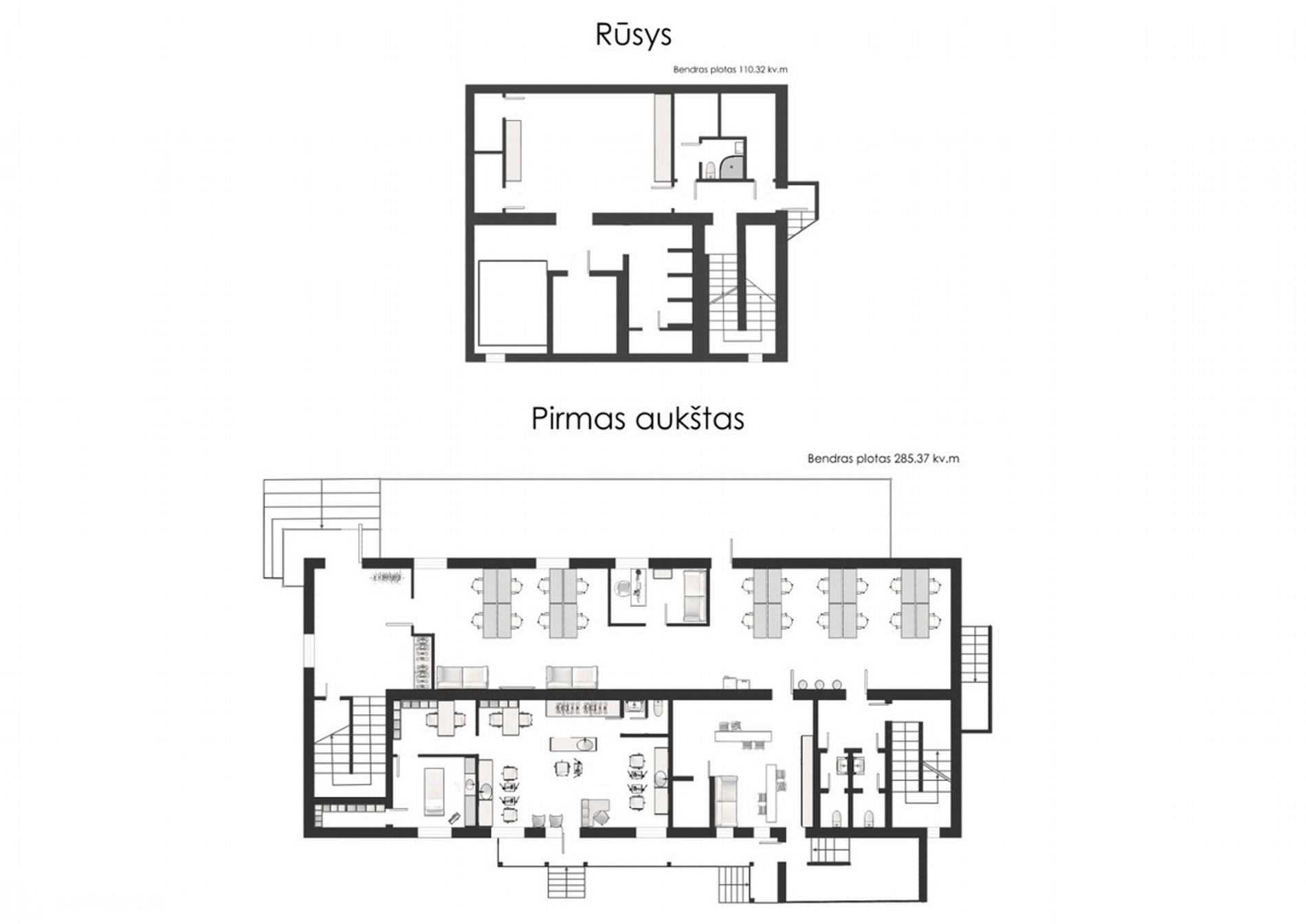 - Pirmo aukšto plotas - 285,37 kv.m;