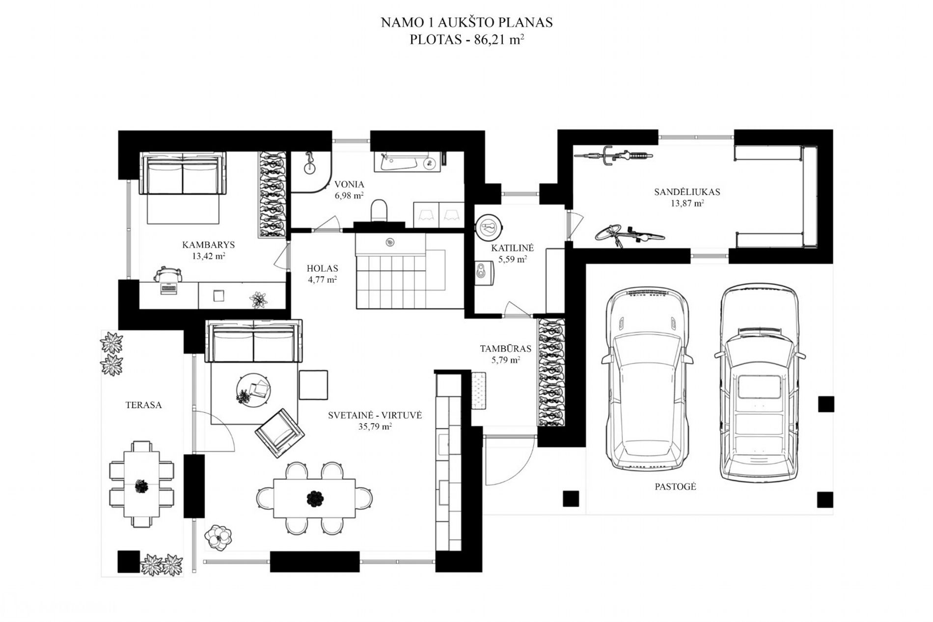 • Paskirtis: gyvenamosios paskirties (vieno buto) pastatas;