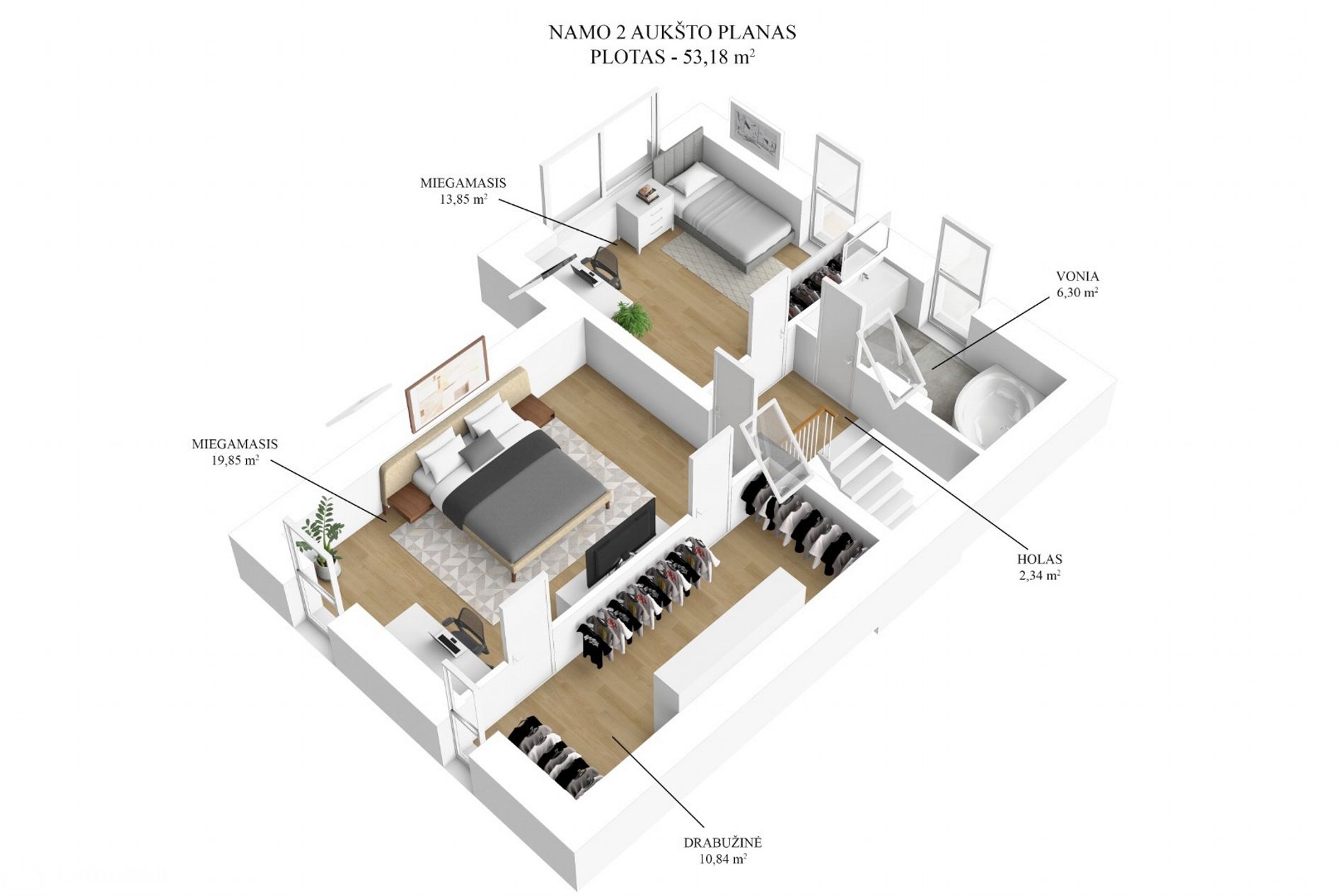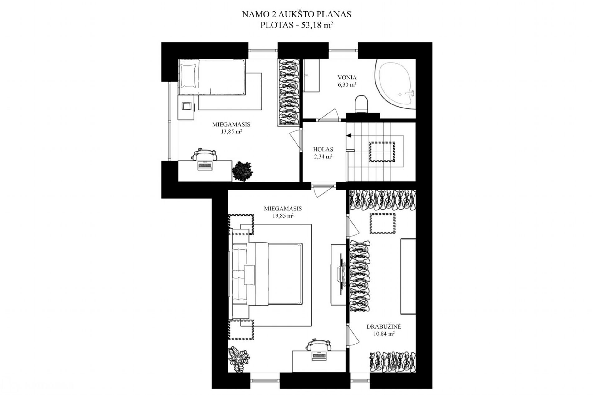 • Didžiajame miegamajame yra galimybė drabužinėje įrengti atskirą vonios kambarį.